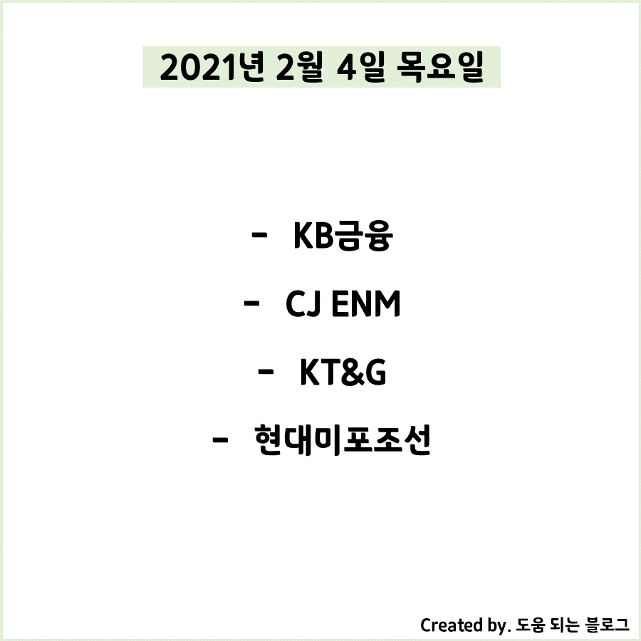 2월 4일 목요일 실적발표예정 기업목록입니다.